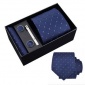 現貨男士領帶套裝滌綸絲8cm黑色方格商務行政tie定制針織一件代發