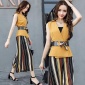 2017夏季新款無袖顯瘦上衣+韓版時尚條紋寬松7分闊腿褲兩件套裝